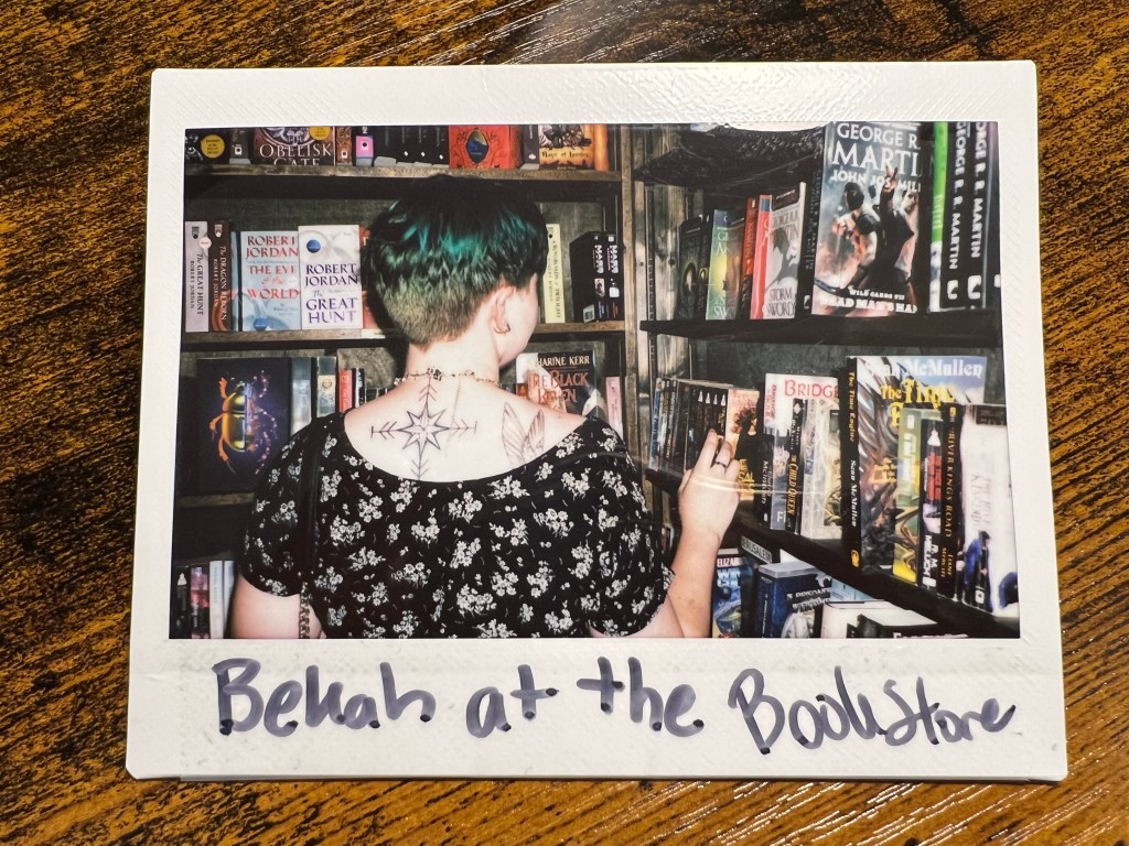My friend Bekah and I were going to see a local play while I was in town, but the production was canceled about an hour before I drove into town. So, we decided to make the best of it, and made a day of walking around in our college town. This was another instance of winging it and the shot coming out amazing–I love how you can see Bek’s back tattoos, and the details in the books.